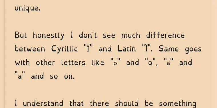 But honestly I don't see much difference between Cyrillic "Ї" and Latin "Ï". Same goes with other letters like "о" and "o", "а" and "a" and so on.