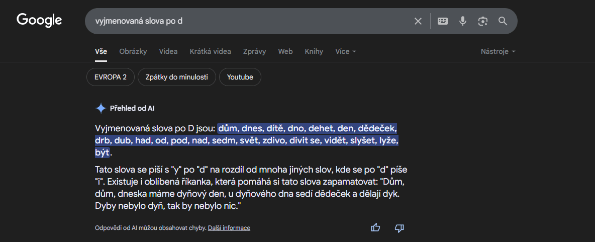 @jan nejvtipnější je, jak slova po D ani všechna nezačínají na D... protože tokenizace.