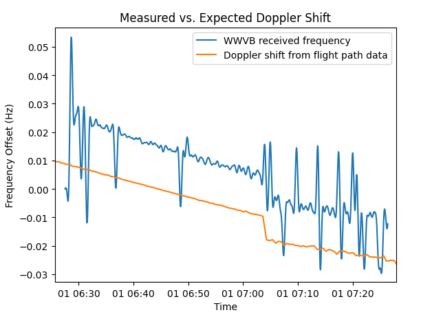 @mossmann very cool: measuring < 0.01 Hz changes in an 60 kHz signal from Colorado while flying in a passenger jet is impressive.