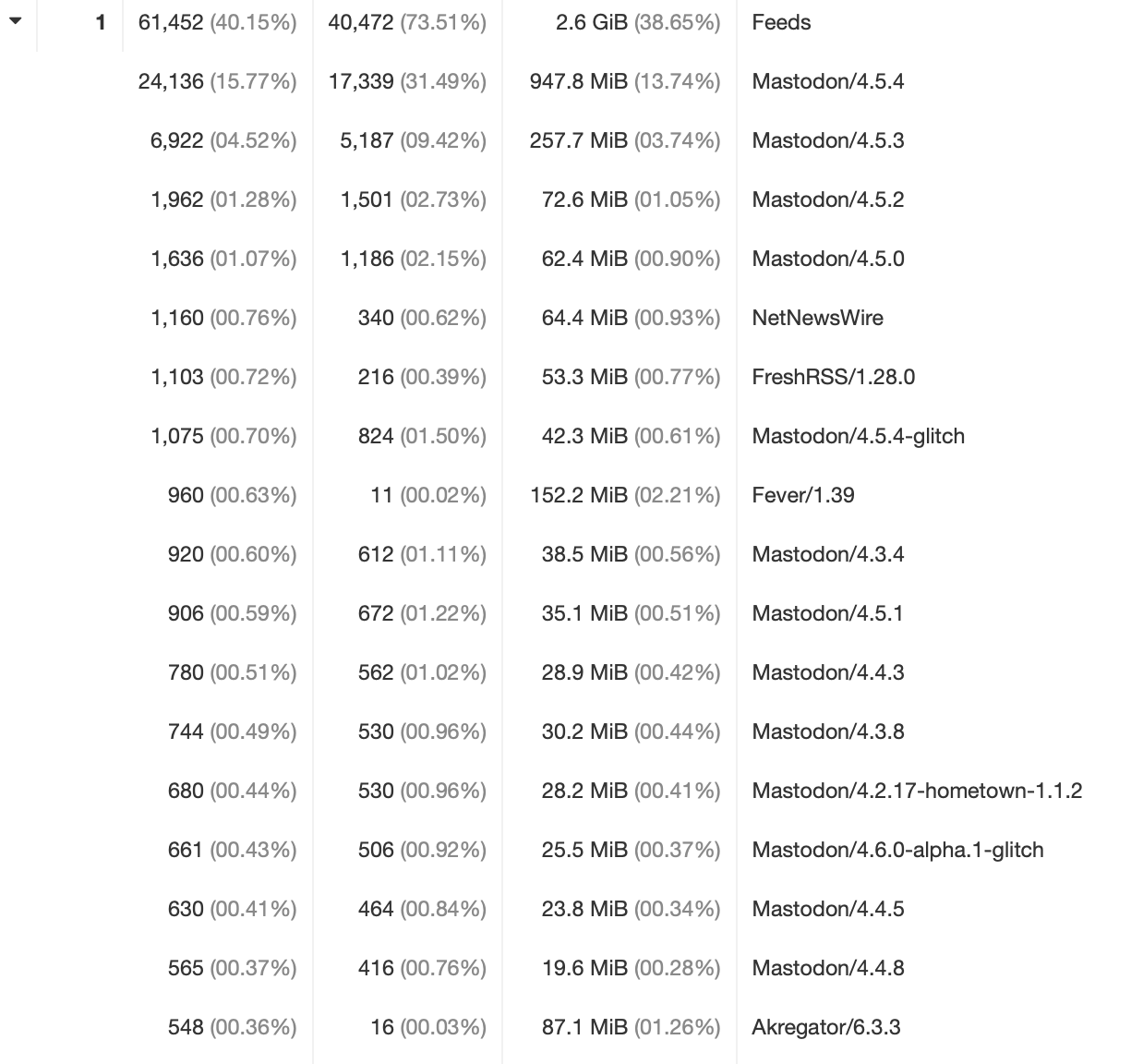 @SolarDavy Majority is other Mastodon servers, NetNewsWire, FreshRSS, Fever, Akregator. @bert_hubert