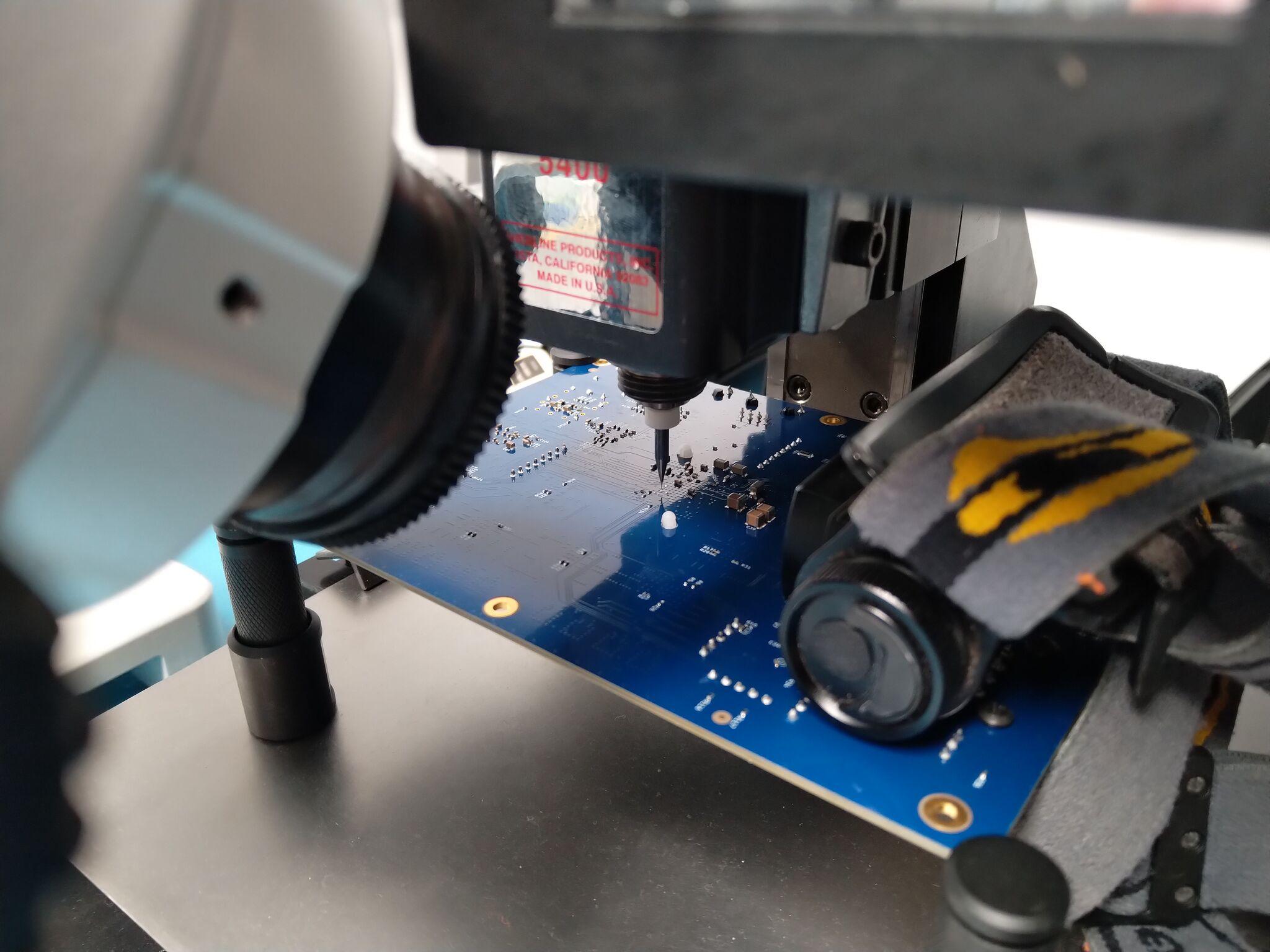 @ErinRose This is probably one of my most challenging circuit edits, adding a new via-in-pad under a 484 ball BGA on a populated ten layer board to break out a SPI chip select that had been miswired.