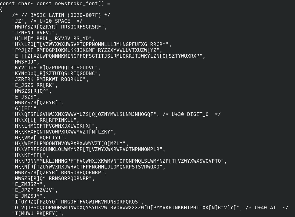 Hmm not sure using the generated C++ font data is going to be easier... What on earth is going on in there...