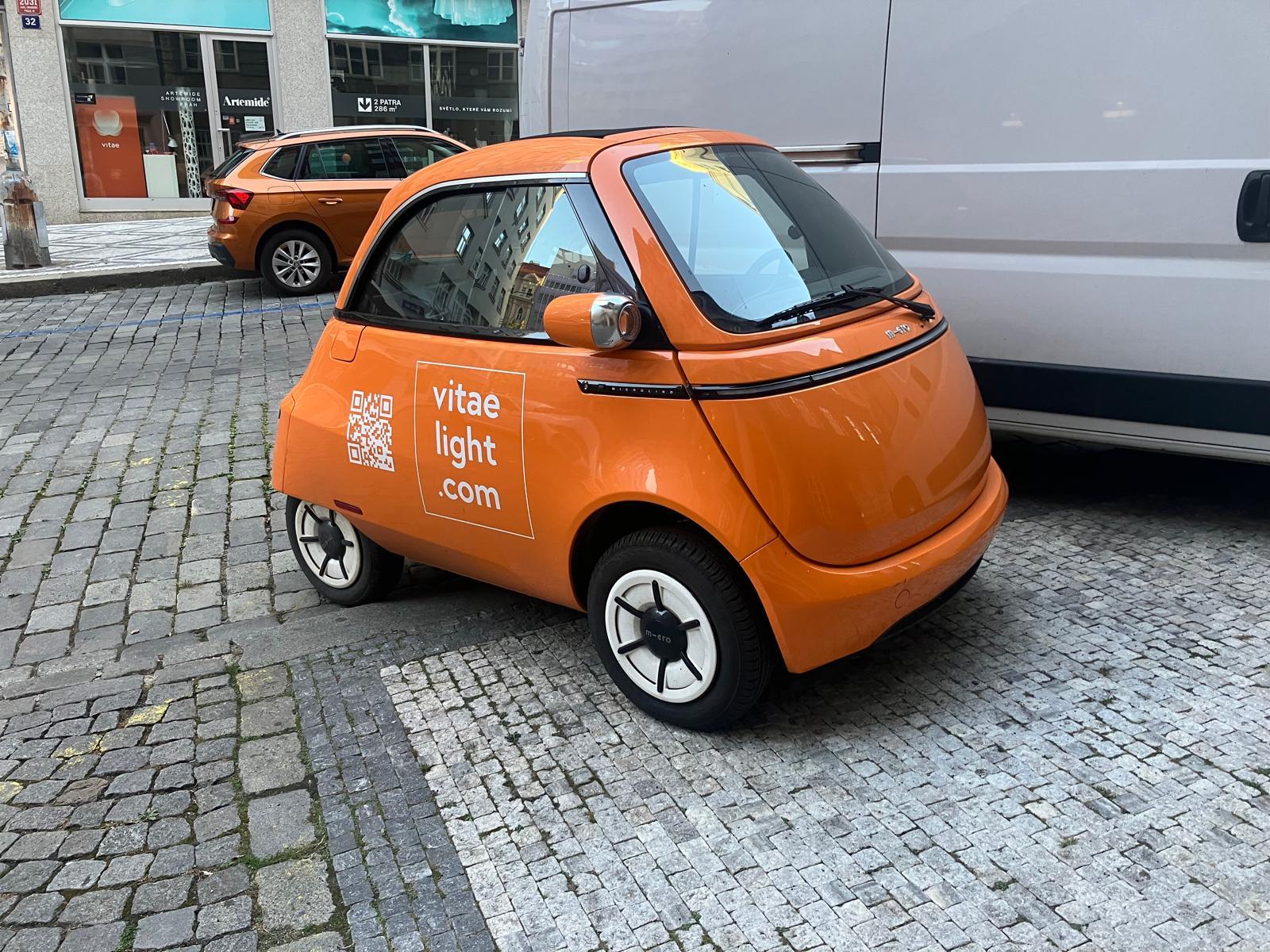 Something small again today. My brother sent me this photo of a Microlino electric car which he saw in Prague recently. The Microlino, a design that has clearly been inspired by the 1950s Isetta bubble cars, is made in Italy but the company is Swiss. Vitae appears to be a small Czech company specialising in lighting technology, by the way (just looked it up).
