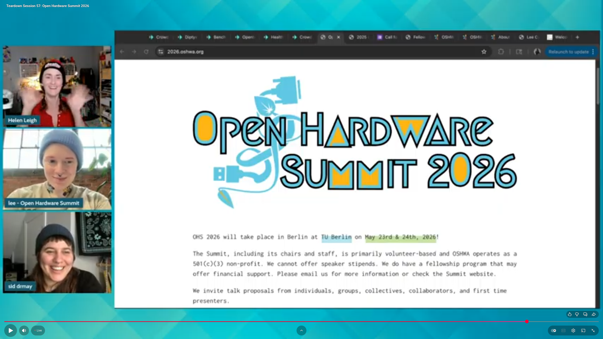 Live now! @helenleigh from @crowdsupply talks to @oshwassociation about the 2026 Open Hardware Summit coming to next May! https://www.youtube.com/watch?v=AY1IItsM_ds