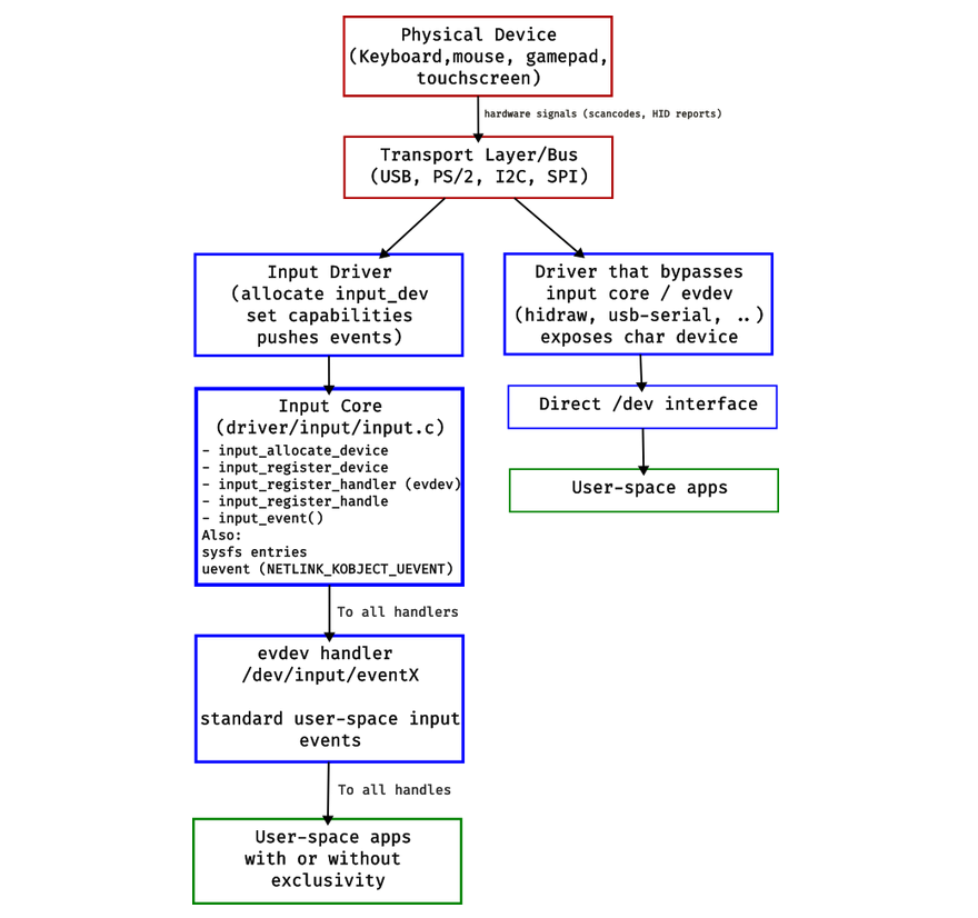 Patrick Louis writes: ""Let’s explore and deobfuscate the input stack on #Linux. Our aim is to understand its components and what each does. Input handling can be divided into two parts, separated by a common layer:
