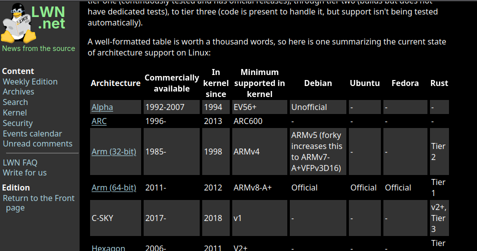 The @lwn article "The current state of #Linux architecture support" is now freely available: