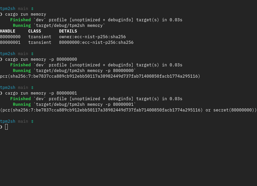 1. View policy as an expression via 'tpm2sh memory -p <handle>'