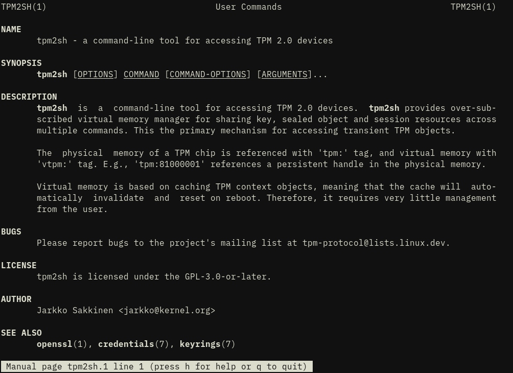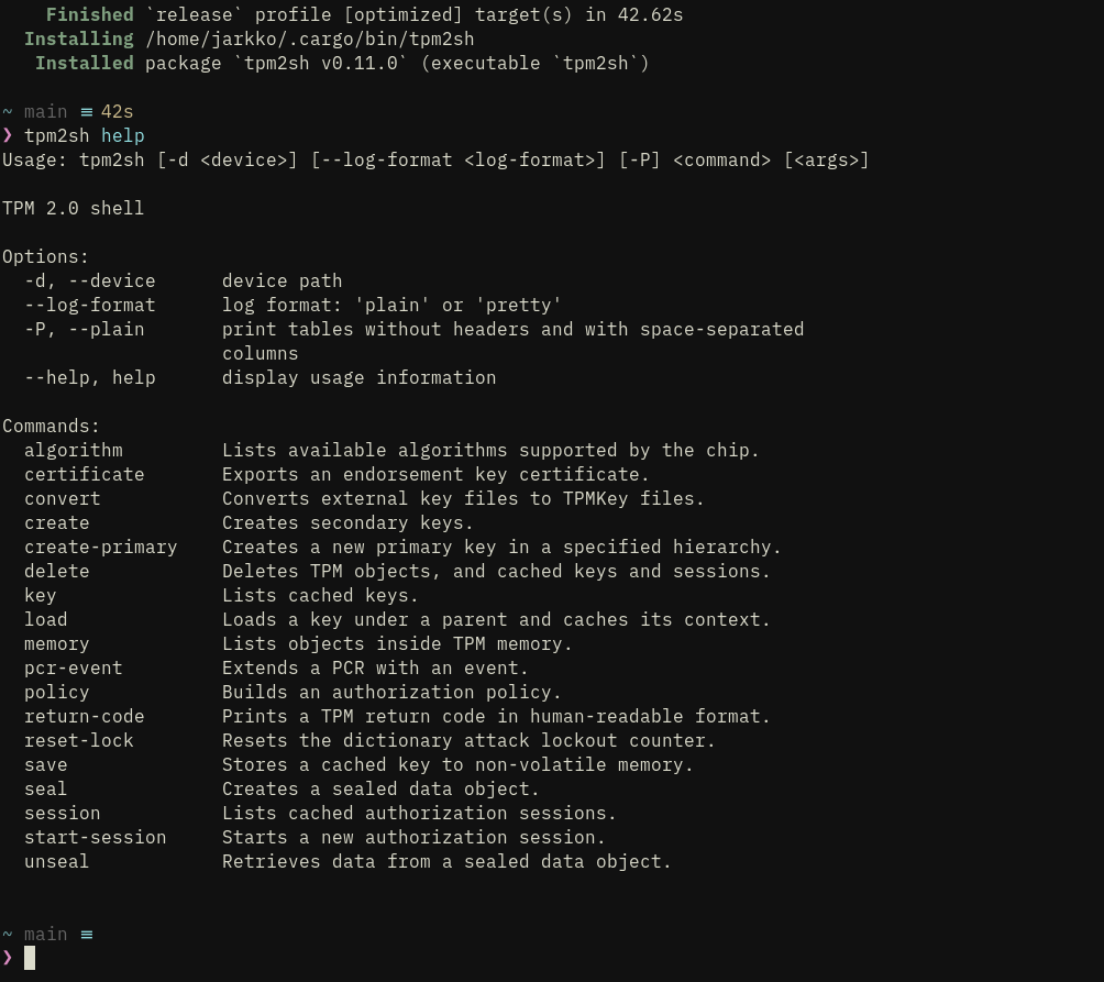 It’s not aiming to do all what tpm2-tools does but more like do stuff that I want to do and implementing that as a command-line tool :-) I.