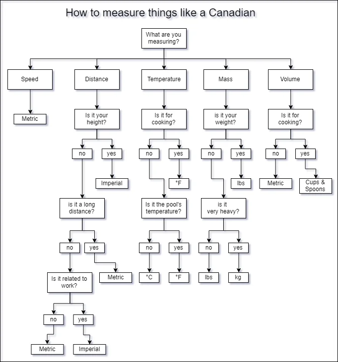 @yassie_j@labyrinth.zone Officially, we tell everyone we use metric, but in reality you need to refer to the Canadian Measurement Flowchart